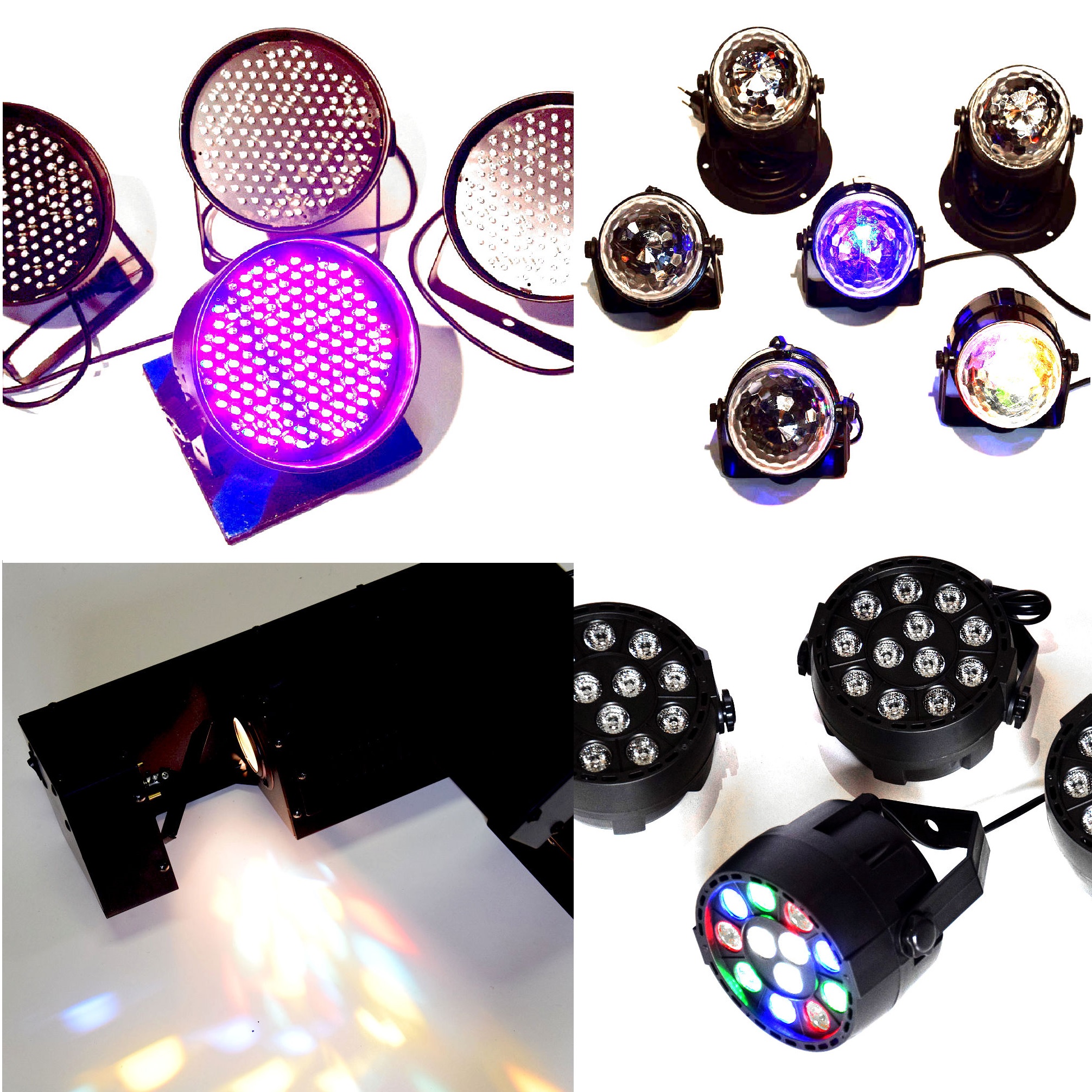 Es stehen diverse Geräte zur Auswahl – ob LED PAR´s – PAR Kannen – Spots – Fader – Moveing Heads – Light Balls oder Scanner – alle Farben des RGB Bereiches möglich.