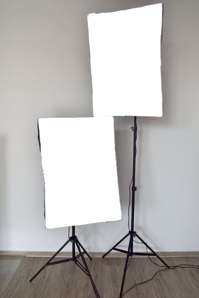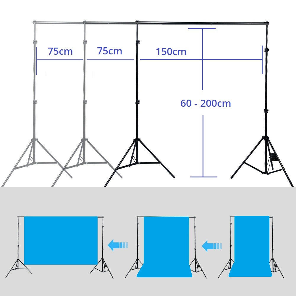 Zusätzlich steht ein Stativ bei, welches mit Leinwänden / Tüchern oder Hintergründen bespannt werden kann