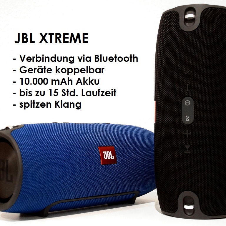 Wenn es keiner großen Beschallung bedarf, man einfach sein Handy spielen lassen möchte, aber denneoch etwas klanglich anspruchsvolles sucht, ist man mit der JBL Xtreme (Bluetooth – Akku Lautsprecher) genau richtig bestückt.